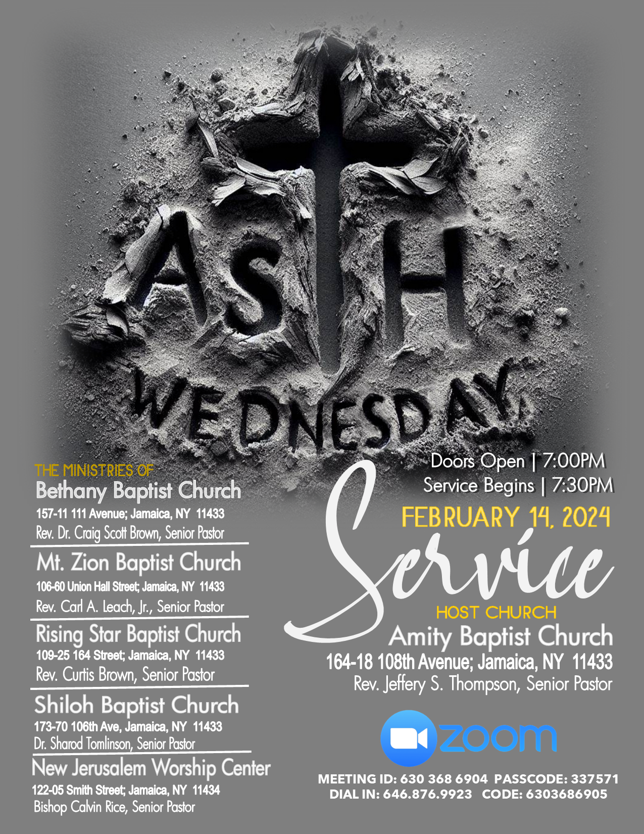 Join Amity Baptist Church, Bethany Baptist Church, Mt. Zion Baptist Church, Rising Star Baptist Church, Shiloh Baptist Church and New Jerusalem Worship Center on Wednesday, February 14th @7:00pm for a Spirit-filled Worship Service. All are invited.